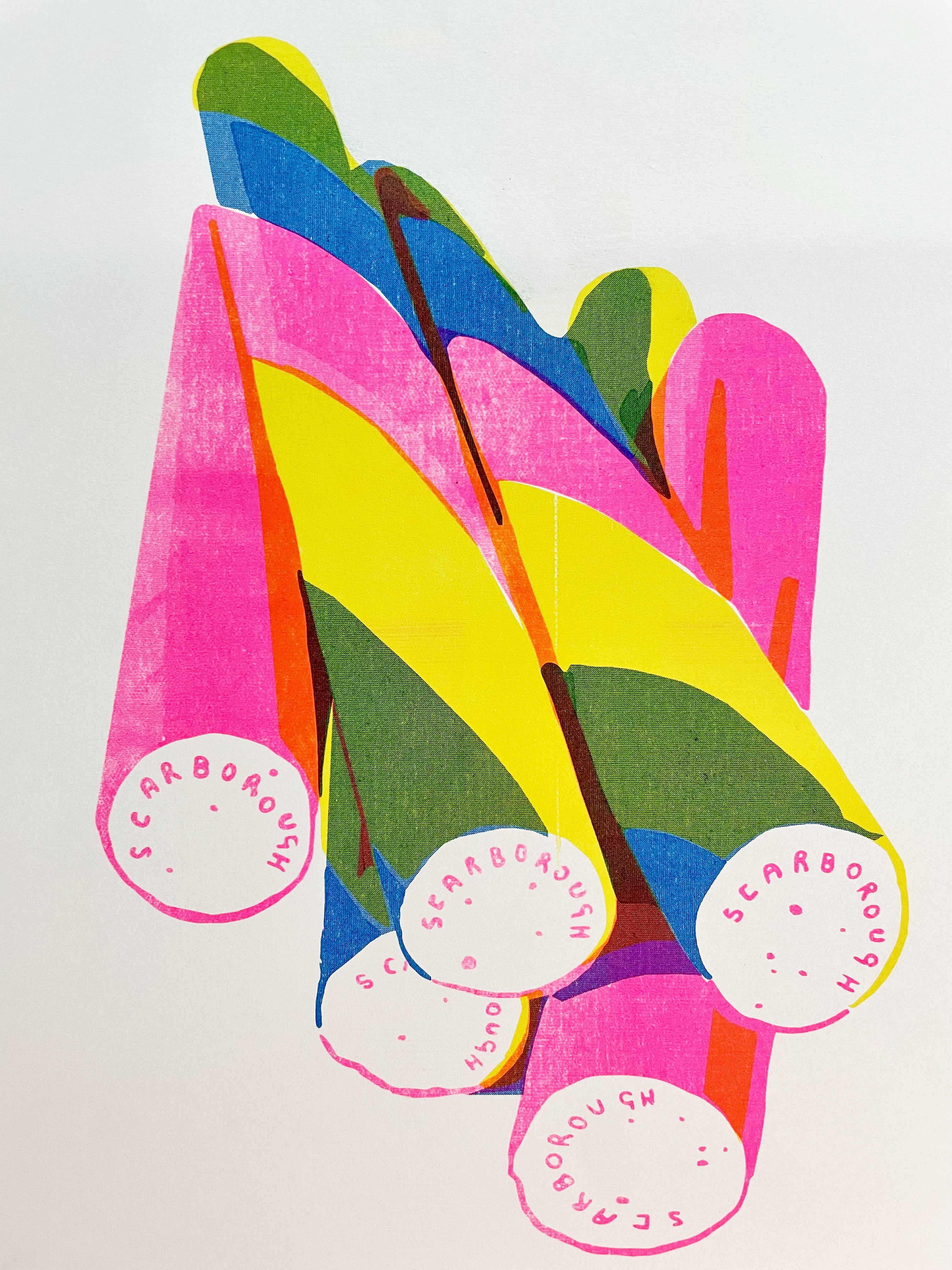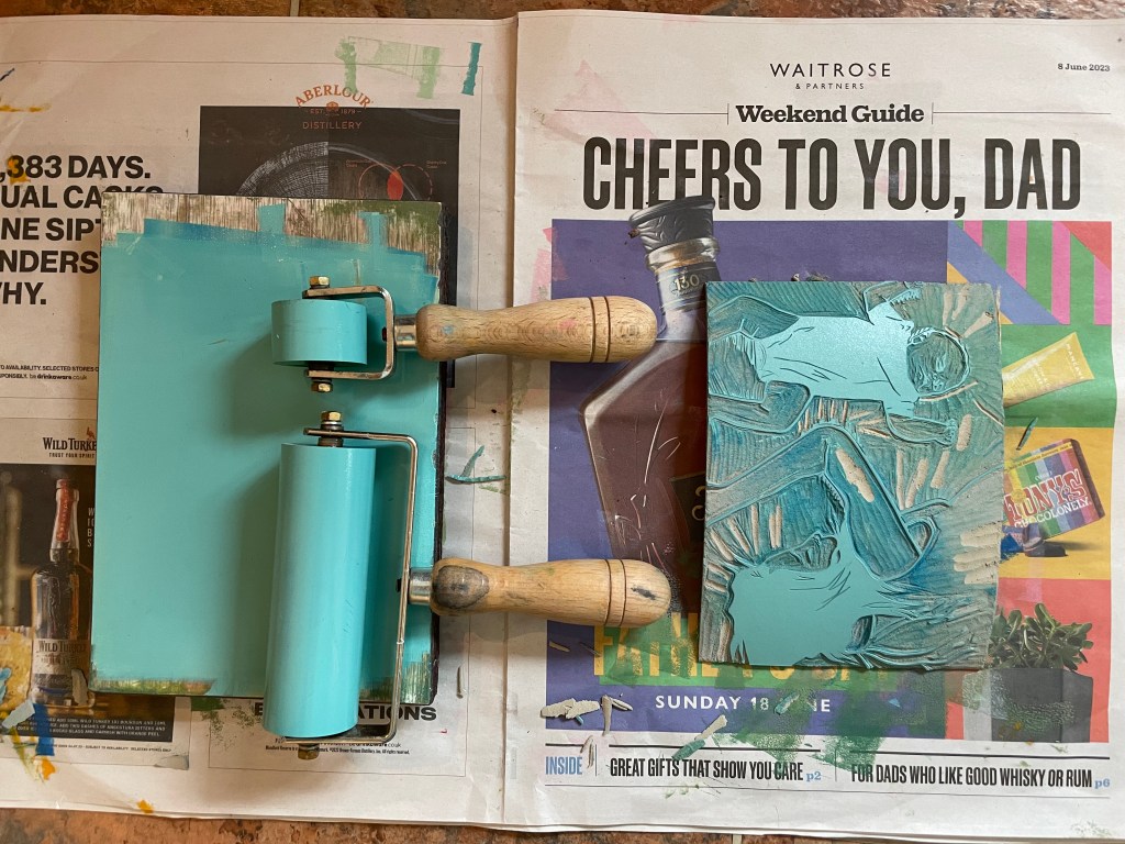 In 2023, I came across an old riso printer and decided to take my chances. I am really enjoying experimenting with the vibrant inks and enjoy the speed that an image is created – a lazy person’s screenprinting as I have once read!
